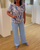 Bluse mit tiefem v-ausschnitt und blumenmuster
