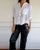 Lässige bluse aus einfarbiger spitze mit plissierten ärmeln und knöpfen