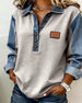 Sweatshirt mit stylischem Denim-Patchwork und langen Ärmeln