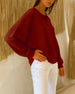 Modische bluse mit einfarbigem stehkragen und patchwork-ausschnitt