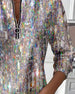 Langärmeliges Hemd mit Pailletten auf den Revers