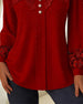 SPEZIFIKATIONEN Oberteil Typ: Oberteile Stil: Elegant,Party Material: 95% Polyester 5% Spandex Anlass: Täglich,Party Ausschnitt: V-Ausschnitt Muster Typ: Einfarbig Ärmel Typ: Regulärer Ärmel Ärmellänge: Lange Ärmel Passform Typ: Normal Jahreszeit: Frühling,Herbst,Winter Einzelheiten: Patchwork,Knöpfe,Gerafft Paket enthält: 1 x Oberteil GRÖ...
