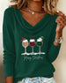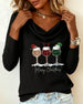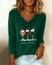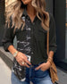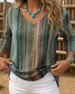 Top geometrischer Druck langärmlig V-Ausschnitt