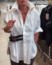 SPEZIFIKATIONEN Oberteil Typ: Hemd Stil: Schick Material: Baumwollmischungen Anlass: Täglich,Arbeit Ausschnitt: Hemdkragen Muster Typ: Einfarbig Ärmel Typ: Überschnittene Schulter Ärmellänge: Lange Ärmel Passform Typ: Normal Jahreszeit: Herbst,Winter Einzelheiten: Schnalle,Knöpfe Paket enthält: 1 x Hemd GRÖSSENTABELLE (cm) Größe Brsutmfang L...