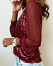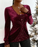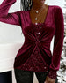 Top V-Ausschnitt mit Pailletten Samt Patchwork