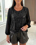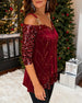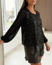 Top mit Pailletten Off-Shoulder langärmlig