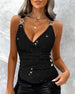 SPEZIFIKATIONEN Oberteil Typ: Cami Top Stil: Sexy Material: Baumwollmischungen Anlass: Urlaub,Party Ausschnitt: V-Ausschnitt Muster Typ: Einfarbig Ärmellänge: Ärmellos Jahreszeit: Herbst,Winter Einzelheiten: Aushöhlung,Ketten Paket enthält: 1 x Cami Top GRÖSSENTABELLE (cm) Größe Brsutmfang Länge S 92 65 M 96 66.5 L 100 68 XL 106...