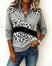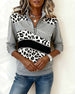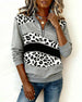 Sweatshirt Leopardenprint Schimmernd Mit Halbreißverschluss Kragen