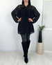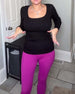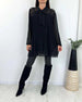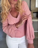 Unifarbene Bluse mit Laternenärmeln und Patchwork-Details
