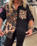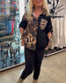 T-Shirt Fake Zweiteiler Schnürung Leopardenmuster