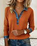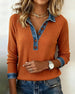 Stilvolles T-Shirt mit V-Ausschnitt, einfarbig, langärmelig