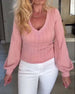 Unifarbene Bluse mit Glockenärmeln und V-Ausschnitt