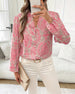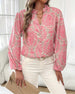 Langärmliges bedrucktes Top mit V-Ausschnitt