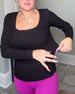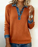 Lässiges, einfarbiges T-Shirt mit U-Ausschnitt und langen Ärmeln