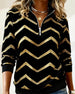 V-Ausschnitt Shirt mit Laternenärmeln und Pailletten