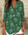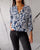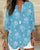 Freizeitbluse mit blattmuster, v-ausschnitt und geknöpften neunviertelärmeln