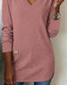 Sweatshirt lässig V-Ausschnitt mit Kapuze einfarbig locker