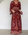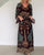Damen-Maxikleid mit V-Ausschnitt und Blattmuster