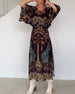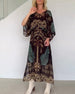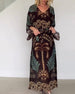 Elegantes Kleid mit Vintage-Print und V-Ausschnitt und langen Ärmeln
