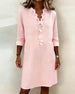 SPEZIFIKATIONEN Stil: Zwanglos Material: 20 % Leinen, 80 % Baumwolle Kleid Typ: Gerades Kleid Kleid Länge: Knielang Ausschnitt: V-Ausschnitt Muster Typ: Einfarbig Ärmel Typ: Regulärer Ärmel Ärmellänge: Lange Ärmel Einzelheiten: Rüsche Passform Typ: Normal Jahreszeit: Frühling,Sommer Anlass: Täglich Paket enthält: 1 x Kleid GRÖSSENTABELLE ...