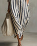 SPEZIFIKATIONEN Stil: Schick Material: Baumwollmischungen Kleid Typ: Wickelkleid Kleid Länge: Midi Muster Typ: Gestreift Ärmel Typ: Regulärer Ärmel Ärmellänge: Halbe Ärmel Passform Typ: Normal Jahreszeit: Frühling,Sommer Anlass: Täglich Paket enthält: 1 x Kleid GRÖSSENTABELLE (cm) Größe Brsutmfang Länge S 92 120 M 96 121.5 L 100 123 ...