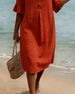 Einfarbiges lockeres Kleid aus Baumwolle und Leinen