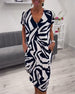 Icon1 Bedrucktes kleid mit kurzen ärmeln und v-ausschnitt