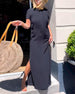 Lockeres langes Kleid mit seitlichem Schlitzrevers