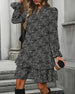 Kleid Elegant Dreiviertelarm Gedruckte Taille
