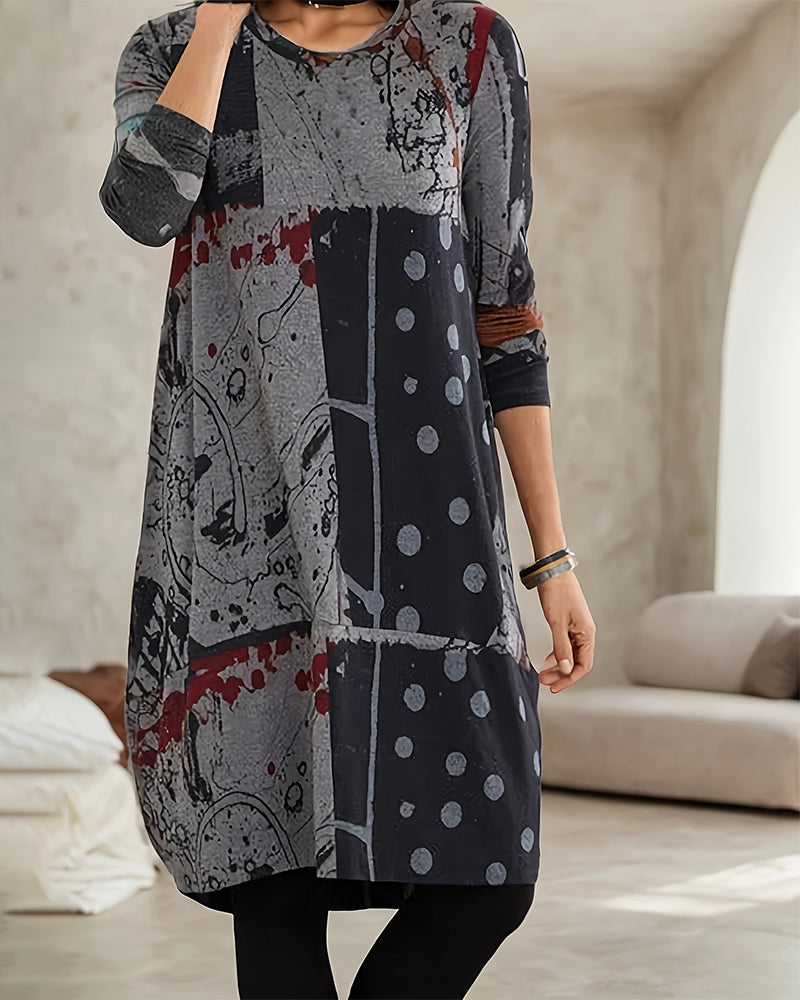 Lässiges Kleid mit Rundhalsausschnitt und Kreis-Print
