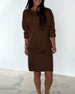 Schlichtes, einfarbiges, elegantes Kleid mit langen Ärmeln und Tasche