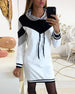 Icon1 Kleid lässig mit Kapuze und langen Ärmeln in Kontrastfarbe