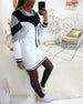 Kleid langärmlig Kontrastfarbe elegant