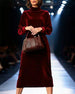 Schlichtes, einfarbiges, elegantes Kleid mit langen Ärmeln und Tasche