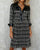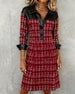 Langärmeliges Kleid mit Patchwork und Hahnentrittmuster