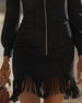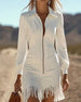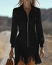 Kleid Mit Reißverschlusskragen Und Fransensaum