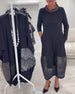 Uni-Kleid mit Glockenärmeln und Patchwork-Details