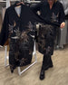 Icon1 kleid mit v-ausschnitt blattmuster und langen ärmeln