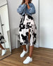 Kleid Elegant Dreiviertelarm Gedruckte Taille