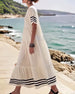 Elegantes Kleid mit ausgestellten Ärmeln und Streifen