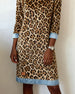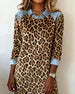 Elegantes Kleid mit Leopardenmuster und V-Ausschnitt