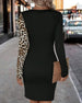 Icon1 Kleid sexy tiefer V-Ausschnitt Leopardenprint Patchwork