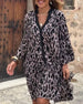 Elegantes Kleid mit Leopardenmuster und V-Ausschnitt