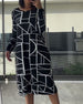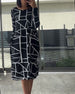 Icon1 Lässiges Kleid mit Aufdruck, lange Ärmel, Rundhalsausschnitt
