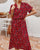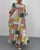 Bedrucktes langes Kleid mit V-Ausschnitt und Halbarm