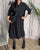 Klassisches schwarzes Kleid mit Laternenärmeln
