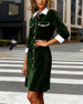 Elegantes V-Ausschnitt Langarm Lederkleid mit Schnürung