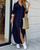 Langes Kleid mit V-Ausschnitt und kurzen Ärmeln