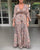 Elegantes langes Kleid mit V-Ausschnitt und Print