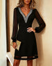 Kleid Modisch Glitzer V-Ausschnitt Laternenärmel